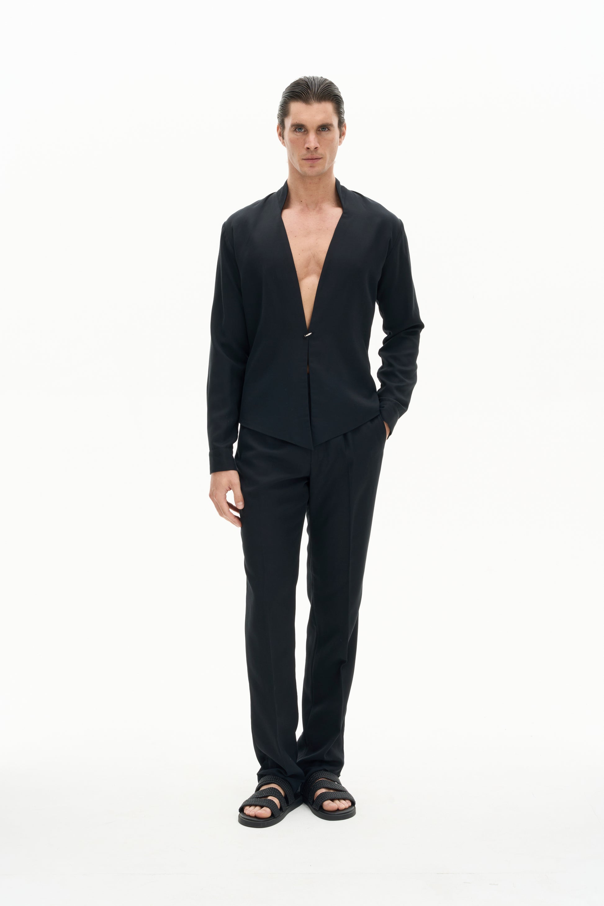 Designed to pair with the Noir Silk Pant, the look exudes quiet confidence and timeless allure.