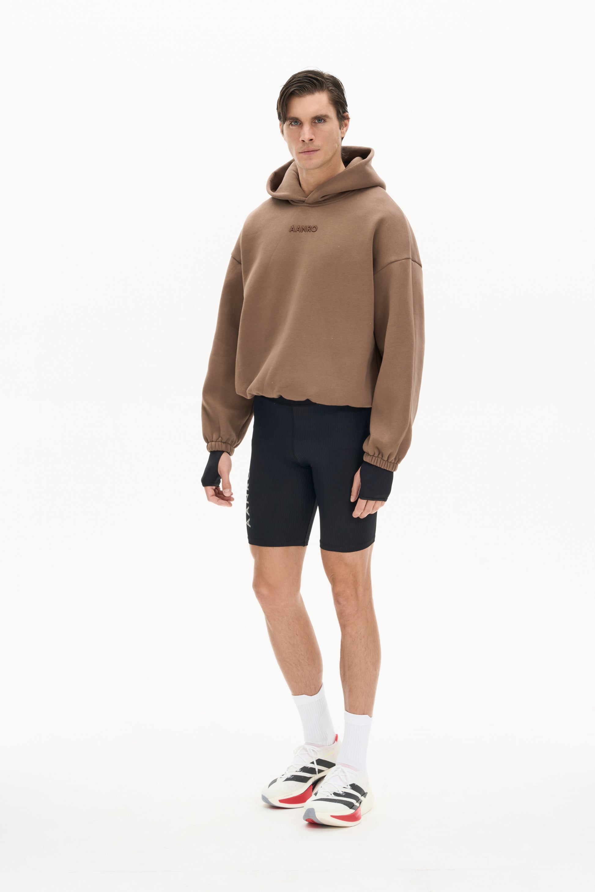 Featuring the iconic tonal 3D AANRO embroidery on the front, this hoodie balances subtle branding with refined design. Elasticated cuffs and hem provide a secure fit, while the oversized silhouette ensures effortless layering and comfort.