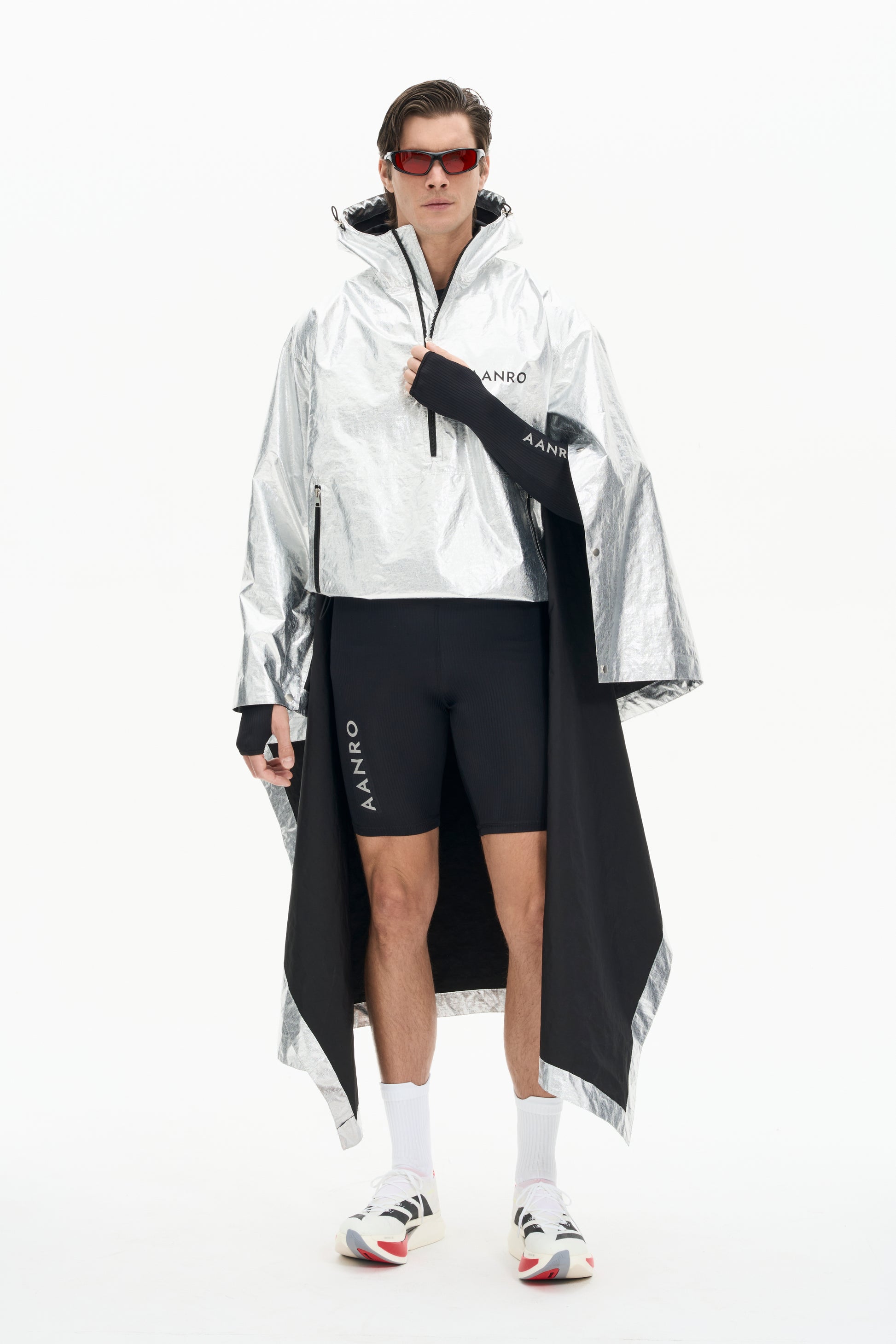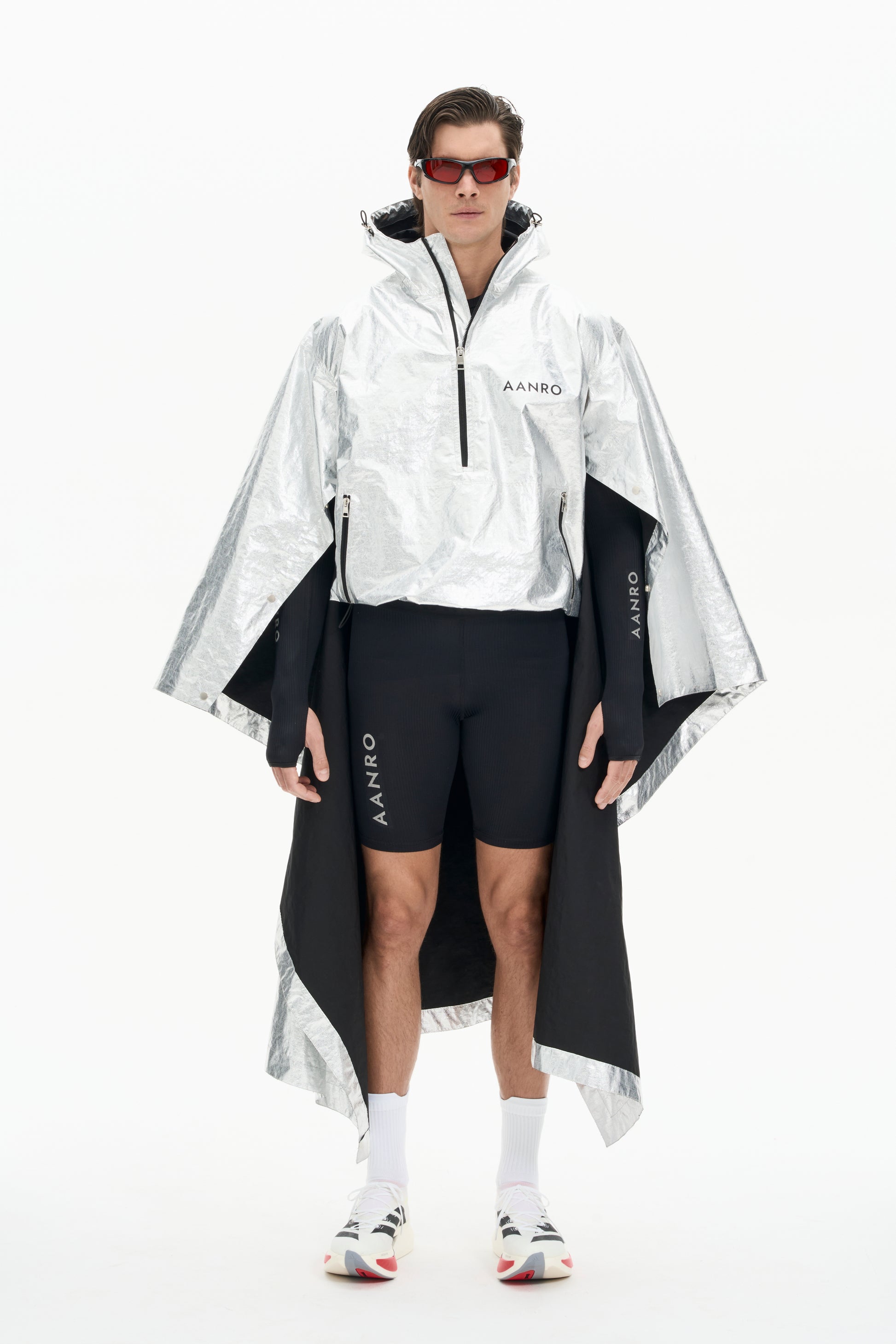The detachable sleeves transform the jacket into a cape-inspired silhouette, perfect for runway shows or statement-making street style. With its sleek silver finish, hood, and adjustable hem, the WUP MAX Thermo Jacket merges functionality with avant-garde aesthetics, making it a truly versatile and eye-catching piece.