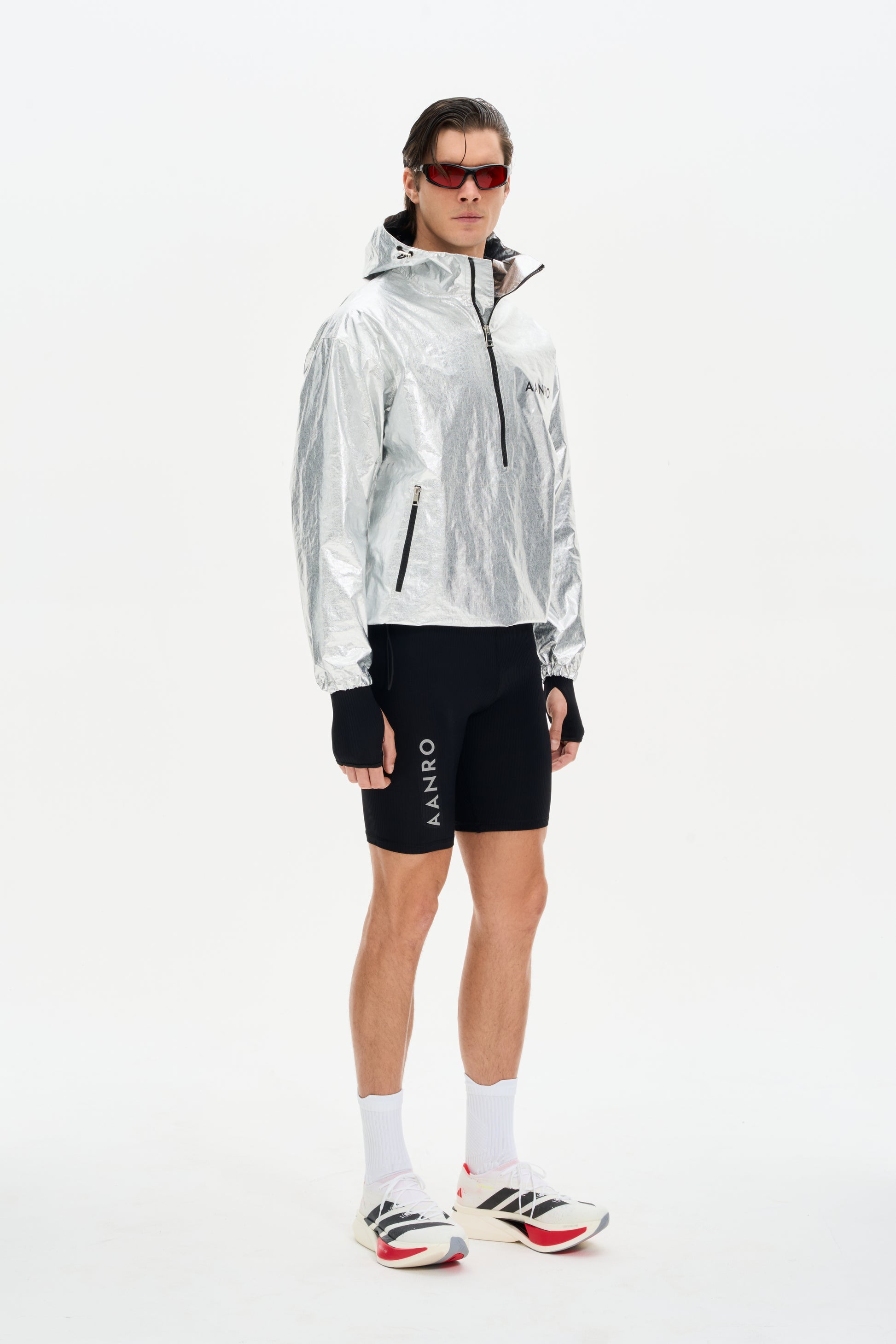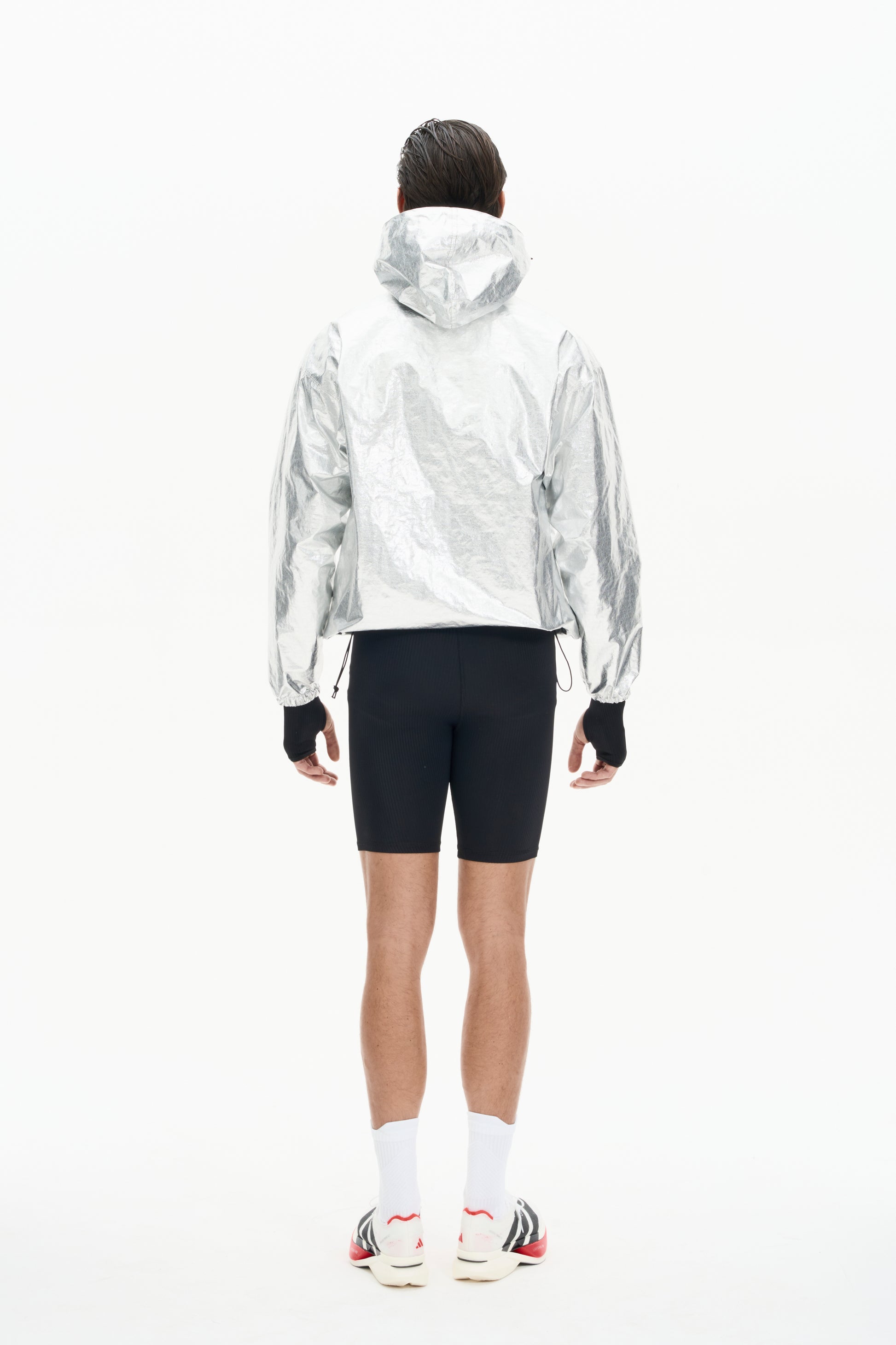 With its sleek metallic finish and functional design, the WUP Thermo Jacket merges innovative performance with contemporary style. The adjustable elastic hem and zipped side pockets ensure practicality, while the hoodie adds extra protection for colder conditions.